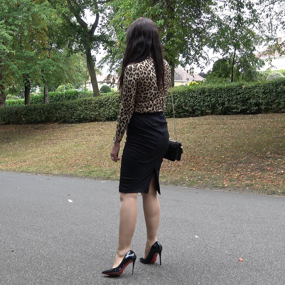 Her sexy spikes make you go weak at the knees. The thin heel so affects her balance, her walk, her legs and affects you too. Watch as she crosses and then re crosses her legs and then of course, you need to follow her !   Download Video : length 5m 42s  : File size 883mb