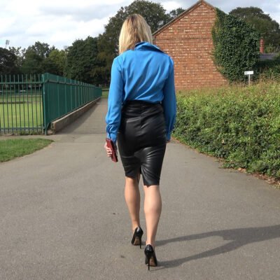 Her lovely court shoe with a beautiful thin heel. Styled by Prada her shoes are a fresh expression of the classic patent court with a low cut front giving a softly pointed look. The high arch accentuates the height of her thin heel which of course stiffens her stride and adds shape and fulness to her legs. In beautiful patent leather this is a pretty shoe for a very pretty lady, enjoy her look ! Download Video : length 5m 43s : file size 938mb