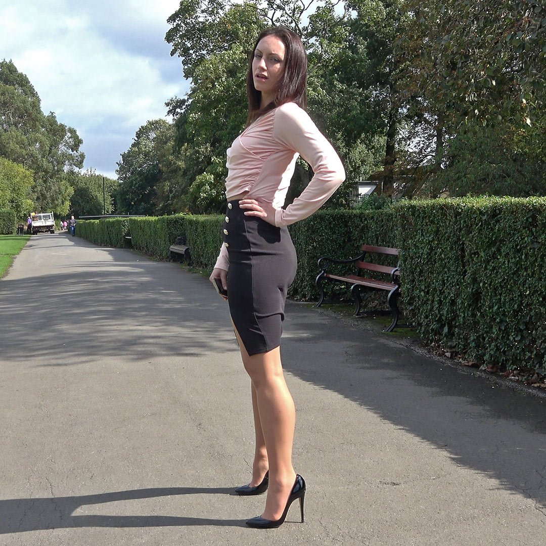 Wearing a 5 inch high heel, thin and shapely with a tight split skirt always affectes Keira’s walk, come why not get to know her a little better in this video.